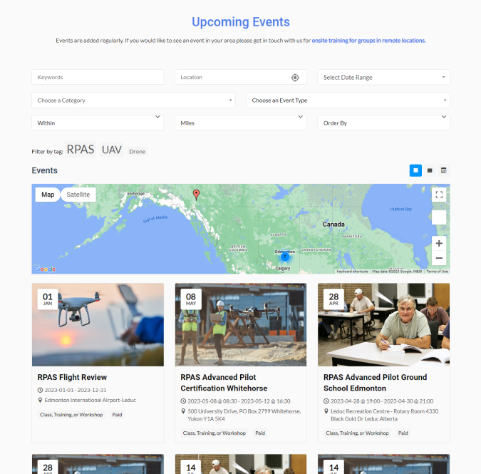 Airlink is a globally recognized firm that provides regulatory training to the aviation industry especially in Drone operation. Their courses are available in Canada and they wanted WP Event Manager to present their courses online.